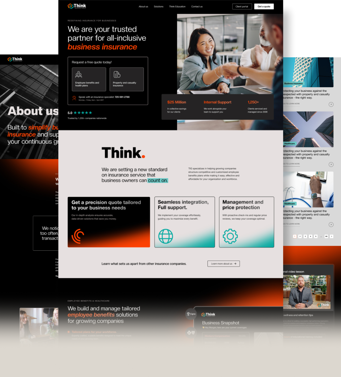We elevated Think Insurance Group from a commodity provider to a premium brand through a comprehensive identity development and strategic website design. We created a sophisticated digital presence that immediately communicates quality, expertise, and trustworthiness to high-value prospects. The new brand positioning and web experience attracted a significantly higher caliber of clientele, enabling business expansion into premium market segments.
